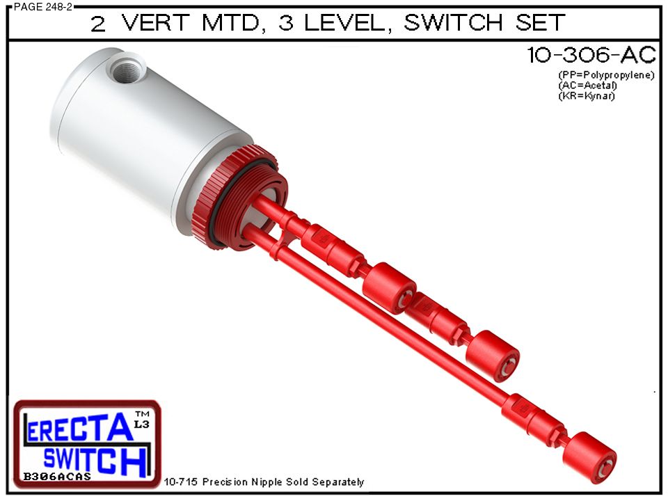 10-306-AC 2″ NPT Mounted Relay Housing 3 Level Drum Float Switch Set (Acetal) – OEM 10 Pack