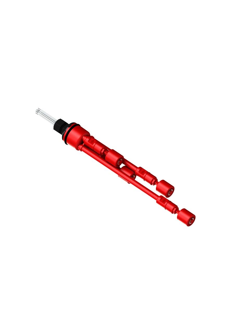 10-408-AC Pop-In Four Level Extended Stem Shielded Multi Level Switch Set features our unique Pop-in wiring receptacle providing a weather tight chamber for wire splices. The Pop-In receptacle cap has a 1/2″ center knock out and Multi Level Switch set provides a liquid tight strain relief connector. The innovative snap on slosh shields dampen turbulence from agitation, proximity to tank filling etc… and protect the liquid level switches during installation and removal. Multi Level Switch Set includes everything except the 10-715-PP-XX precision nipples.10-715-PP-XX nipples are available in 1 inch increments from 1 – 70 inches. If you need differential level sensing in a tank with a thin plastic bulkhead or tank lid (.062-.078), just punch a 1-9/16″ hole and this this multi level switch set just pops right in.This item is sometimes referred to as a water level switch, float switch, or magnetic level switch.