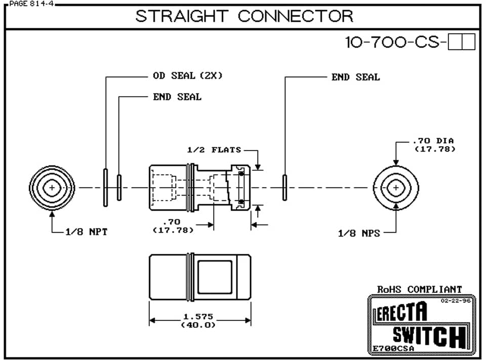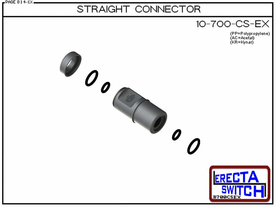 10-700-CS Straight Connector – The 10-700-CS Straight Connector joins our 10-782 small vertical level switch and many of our competitors small vertical level switches to our 10-715 precision nipples enabling you to make your own custom extended stem level switches in the field with no cutting gluing or gooping at an affordable price. Double viton o ring seals ensure reliability.