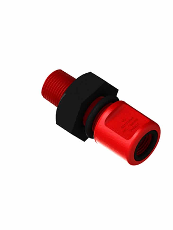 10-701-BH ΒΌ- 1/8 bulk head fitting is designed to convert our 10-782 small vertical level switch to a ¼” Mount with jam nut and o ring and accommodates the 10-700-SS slosh shield. The 10-701-BH can also be used with many of our competitor’s small vertical level switches as well. The 10-701-BH also connects to our 10-715 threaded 1/8 precision nipples enabling extended stem level switch configurations with 1/4 β€œbulkhead mount.