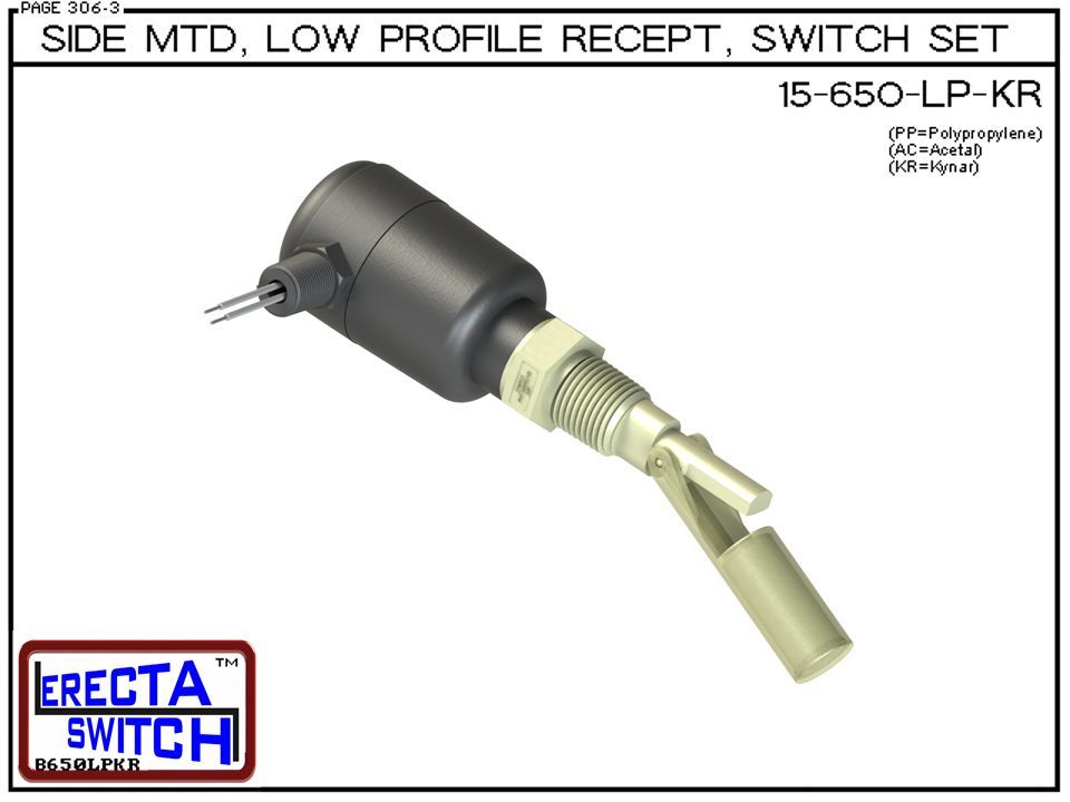 15-650-LP-KR Side MTD Low Profile Recept Level Switch Set adds a liquid tight low profile wire receptacle to the 15-650 side mounted level switch. The level switch wire receptacle replaces the jam nut and provides a liquid tight chamber for wire splices with a side egress featuring 1/4 NPT male threads. 15-650-LP level switch mounts from the outside in using built in 1/2″ NPT male threads or mount in side out using the built in 1/4 NPT male thread and included jam nut and o ring. See also series 10 Liquid level sensor product group including vertical mounted single point level switch sets, side mounted level switch sets. extended stem level switch sets and multi level switch sets, and series 15 side mounted liquid level switch product group.