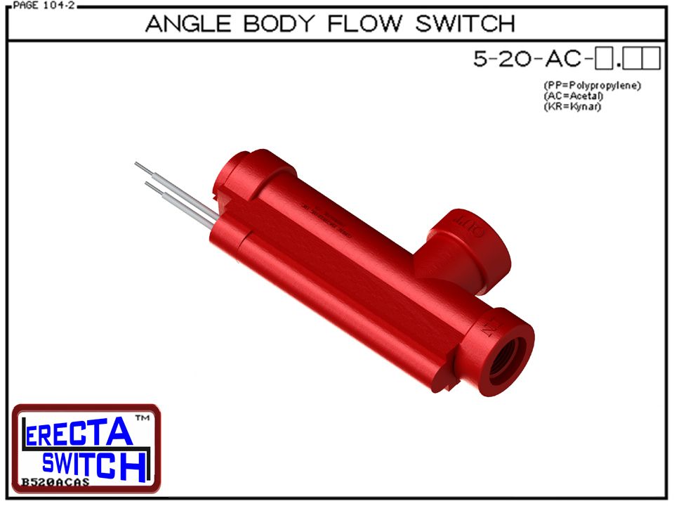 The 5-20-AC Angle Body Flow Switch, crafted from durable Acetal, is the gold standard for OEM low-flow sensor applications. Its innovative design features a built-in clean-out port, allowing quick removal of the spring and poppet without disassembling your plumbing system.