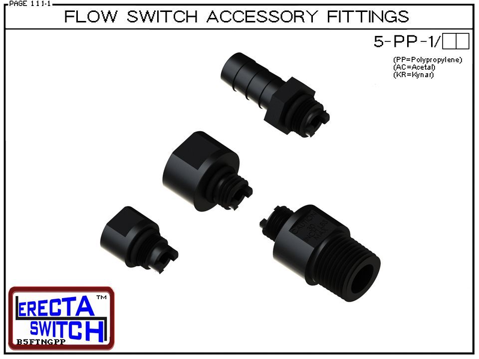 With their compatibility across multiple ERECTA SWITCH models, secure sealing with Viton O-rings, and durable polypropylene construction, the 5-PP Flow Switch Accessory Fittings offer a cost-effective and reliable solution for adapting flow switches and indicators to a variety of threads.